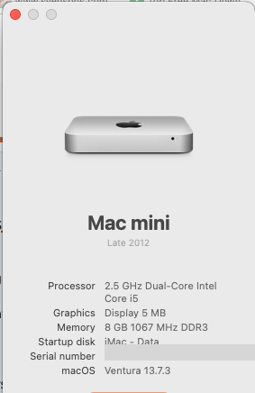 I have a mac mini 6,1(late 2012). SSd was previously boot drive for imac 12,1 running Monterey.