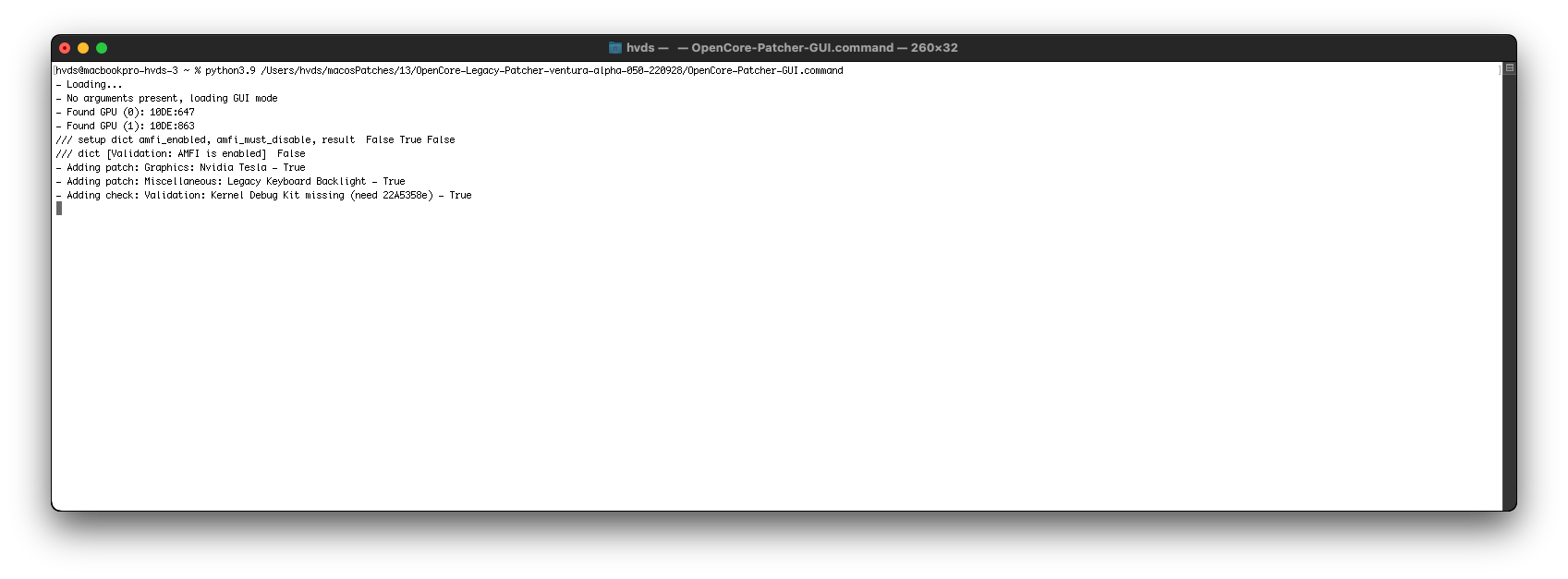 - Once in Ventura, run the OCLP-GUI of VA 0.5.0 again