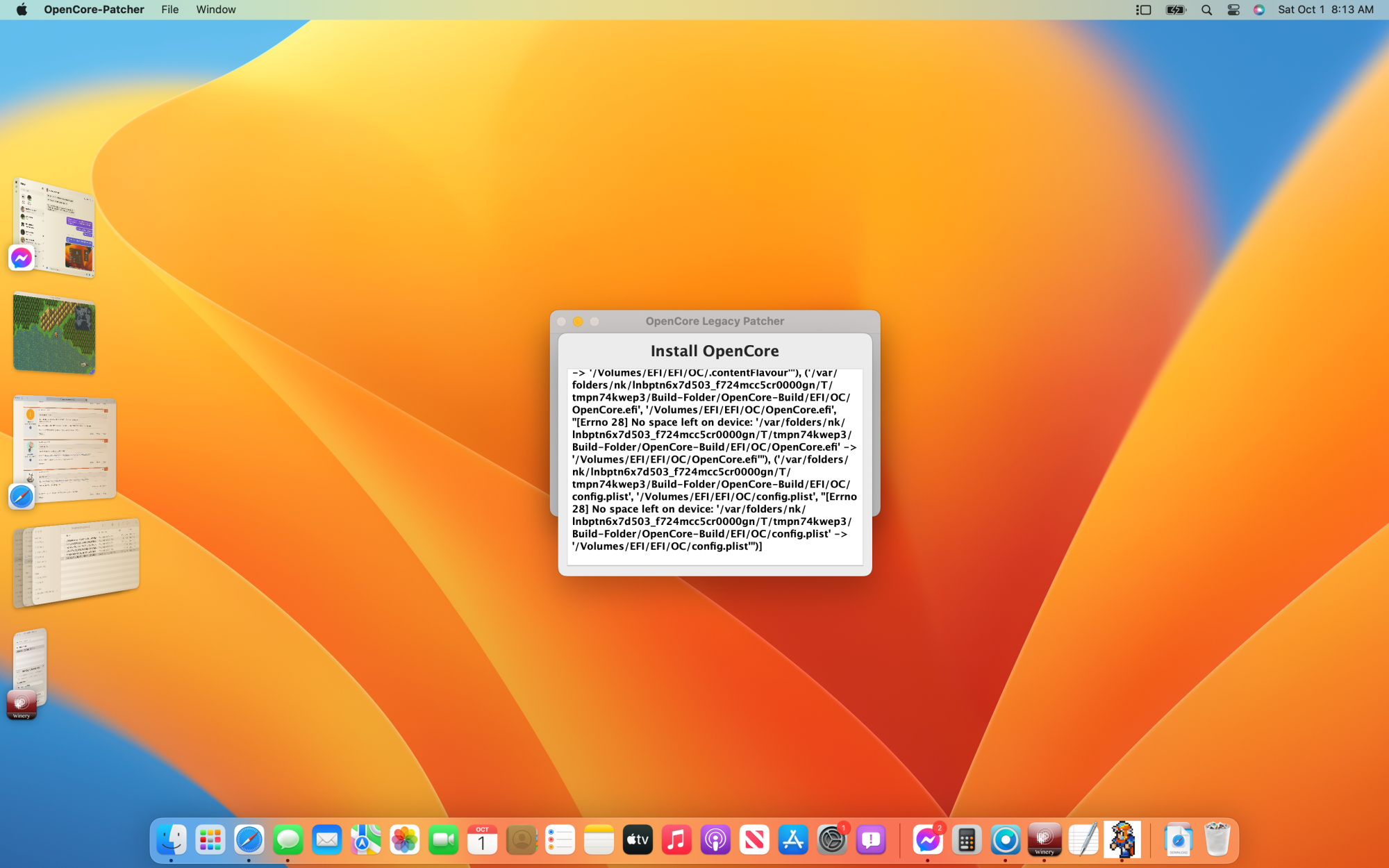 The "no space left on device" might be a clue...Question: when I try to install open core onto a 128gb apple ssd I get this anybody have a solution maybe a script or what?