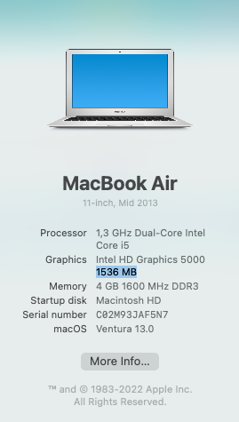 The GeekBench 5.4.5 GPU Metal test still crashes the machine on the Canny task (as in Monterey), but otherwise the results are excellent, all keyboard controls, trackpad gestures and fan speed regulation work perfectly and the machine seems very stable on Ventura.