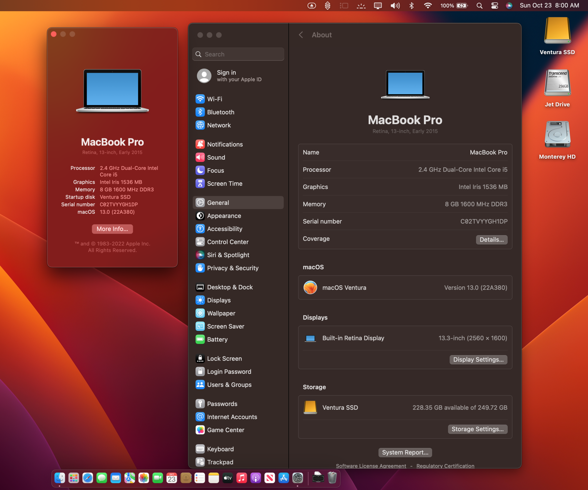 I am using external SSD thunderboltI have the same setup as you but It feels slower than Monterey.