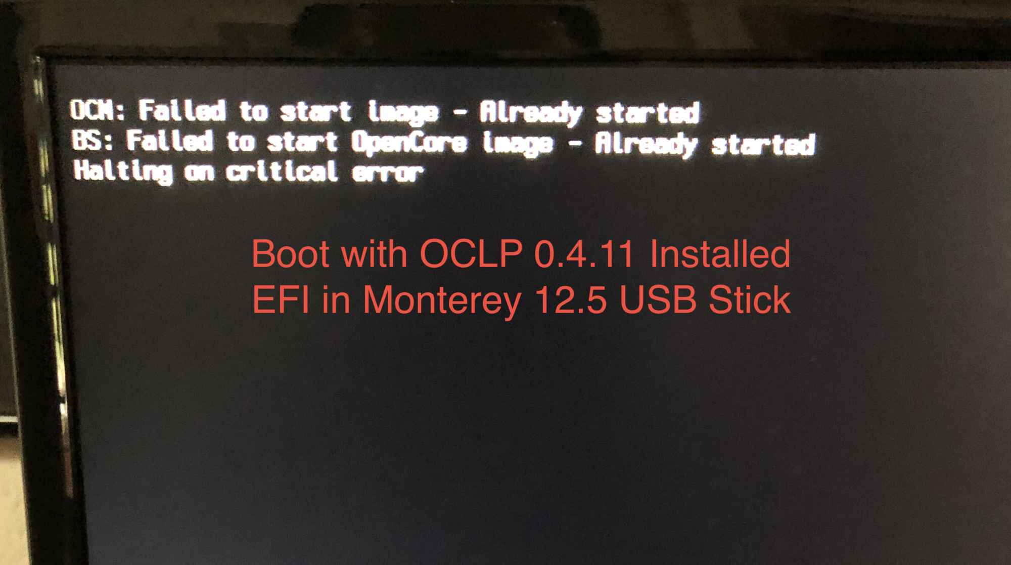 It sounds like you’re trying to double stack modified EFIs. When starting the the machine, hold the Option (Alt) key. Then select the appropriate EFI partition. Then you’ll get a similarly looking boot picker screen presented by OpenCore. There you select your OS volume that you want to boot or, alternatively, the installation media that you want to use.@perez987 @headlessmike
