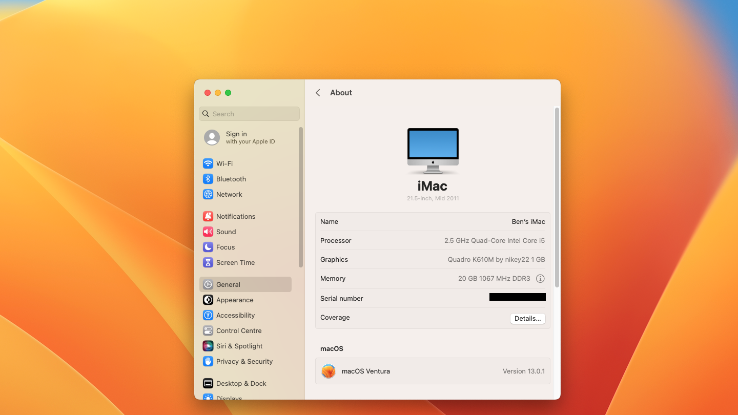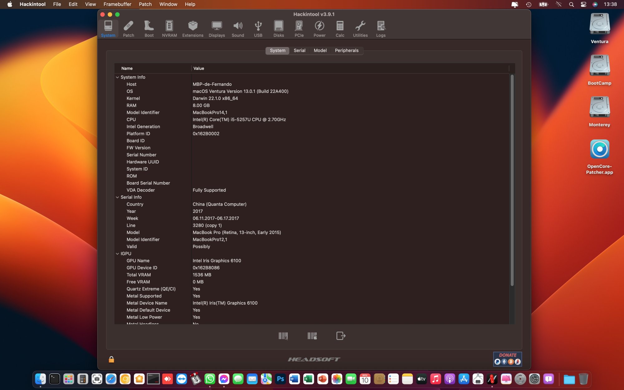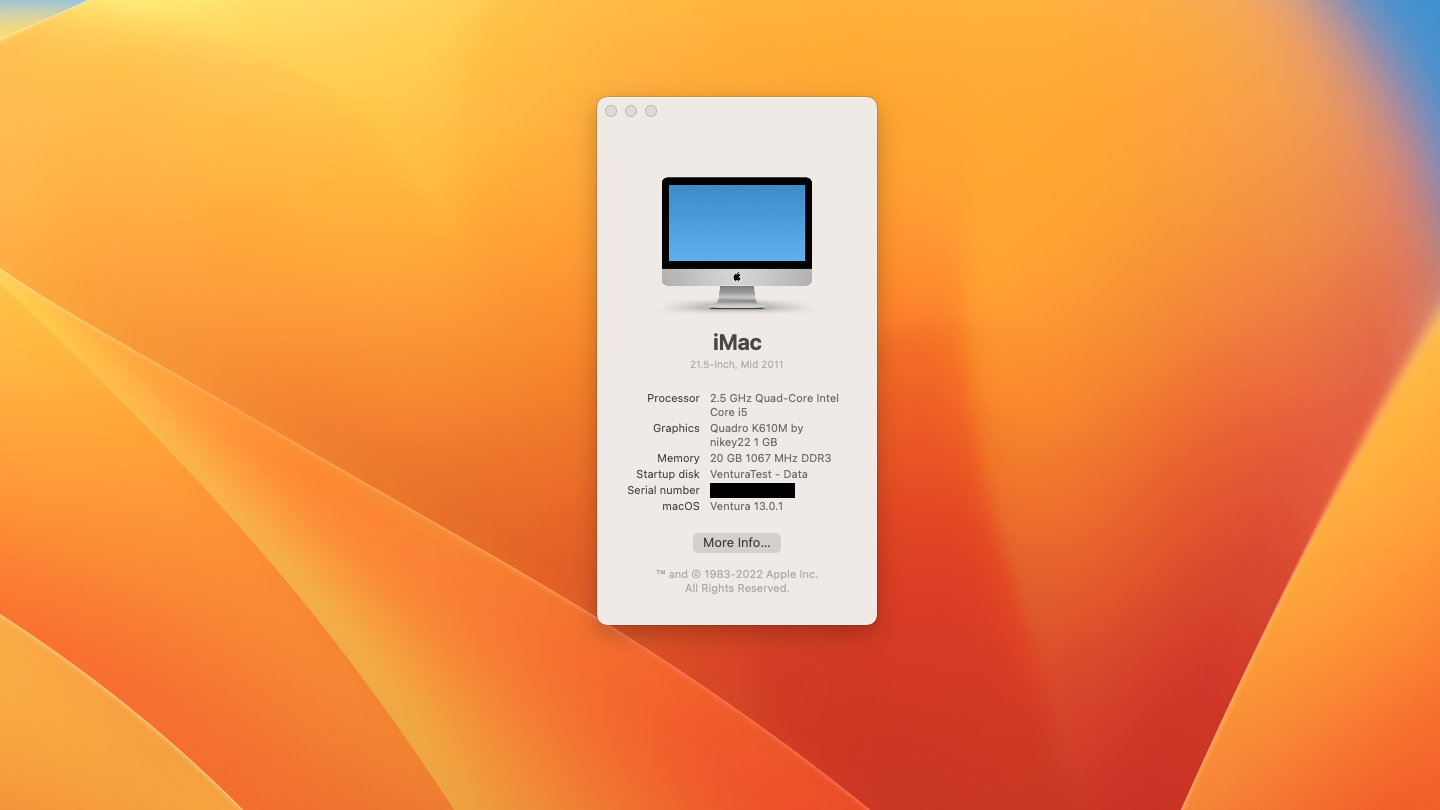 I installed Ventura 13.0.1 on my MacBook Pro Late 2013 15".