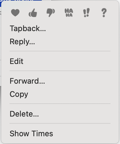 • Tapback in Right Click menu in iMessage