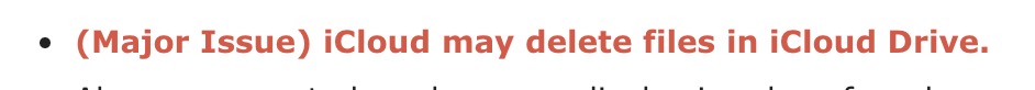 - (Major Issue) iCloud may delete files in iCloud Drive.