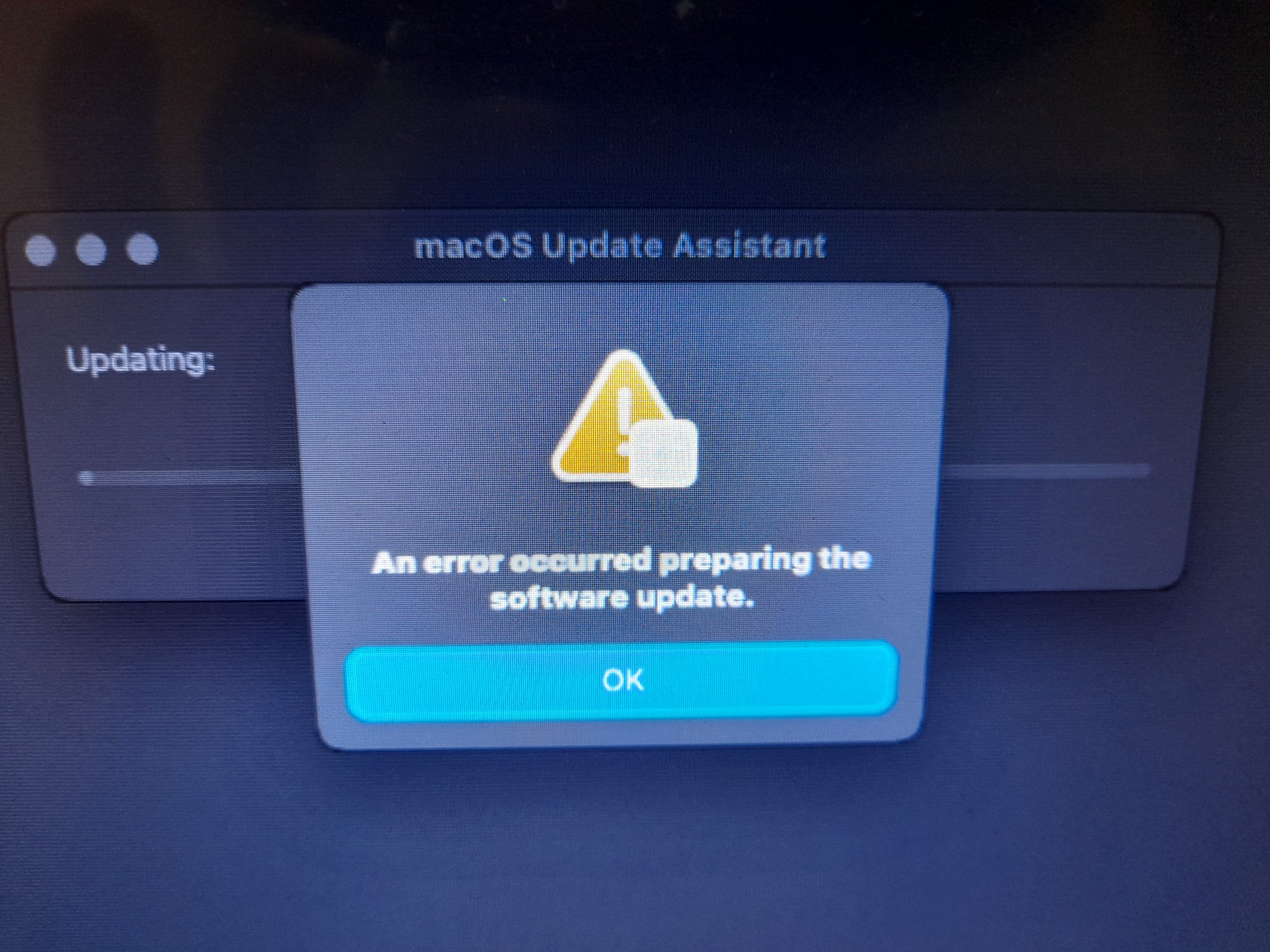 The MACOS Update Assistant prevents the install from completing.