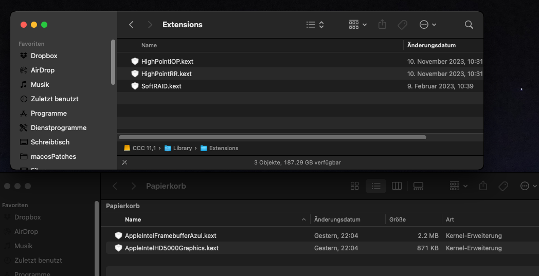 So anyway it is easy to recover and avoid the windowserver crashes. Is one of these two kexts the culprit or their interplay with CoreDisplay, SkyLight? Don't know, needs more fine-grained investigation.