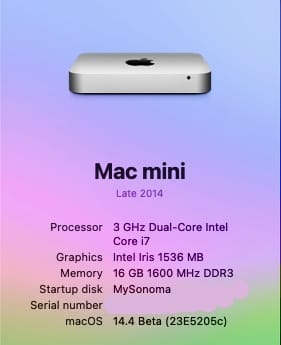 I posted about a week ago that I updated my 2012 Mac Mini to 14.3.1 and I used OCLP 1.3.0 with no issues:anyone running macOS 14.3 successfully with OCLP 1.3.0, specifically on a mini 6,2 perhaps?