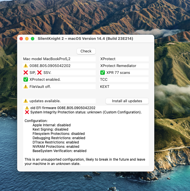 I have 14.4 (final) installed via OCLP 1.4.3 (latest release) on MacBook Pro 5,2 (Mid 2009).While casually checking, launched SilentNight and realized XProtect is Off. spctl --status returns "assessments disabled" - is this normal and expected post OCLP root patching?