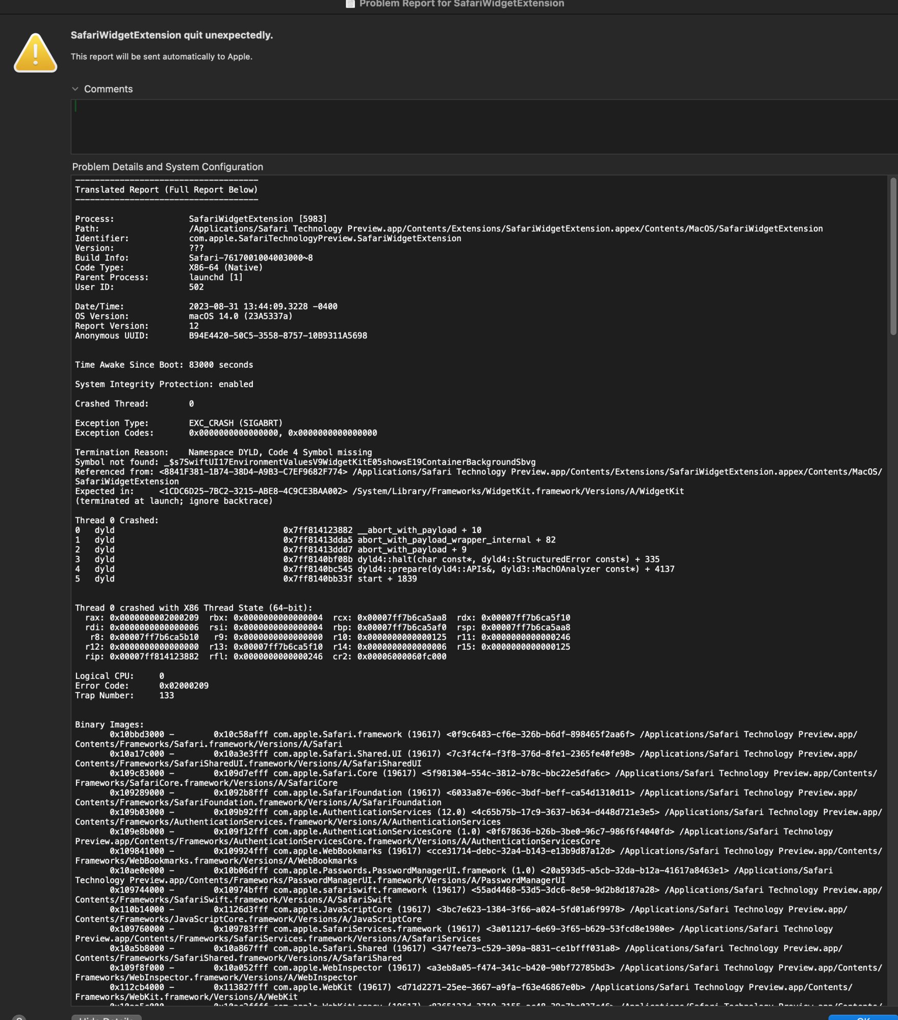 - Xcode - v14.3.1 (Need to update to the Xcode 15 beta)