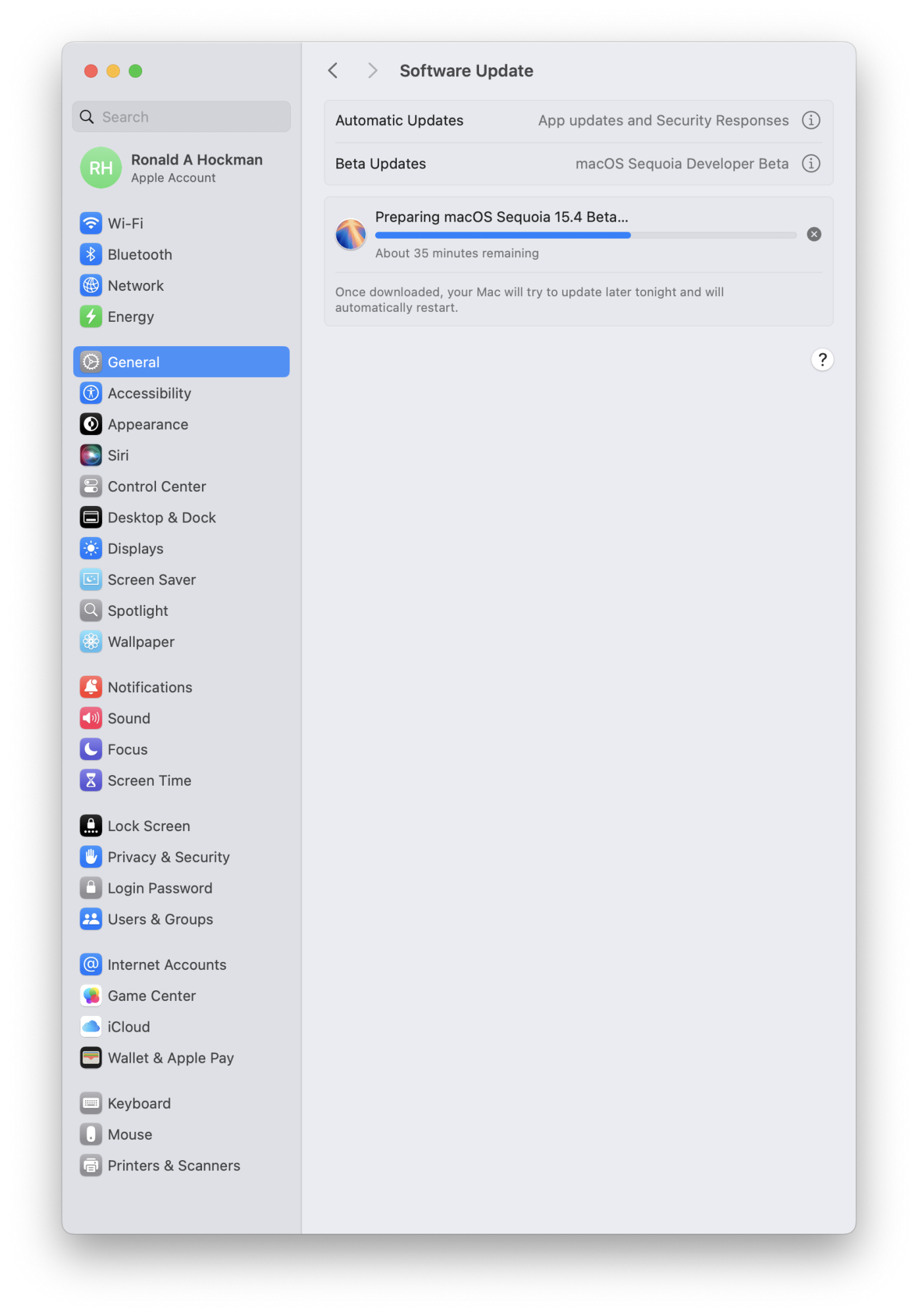 Sequoia 15.4 Beta (Build 24E5206s) out - all of 15.44 Gb! No, I am not about to install it. Just for everyone's info.