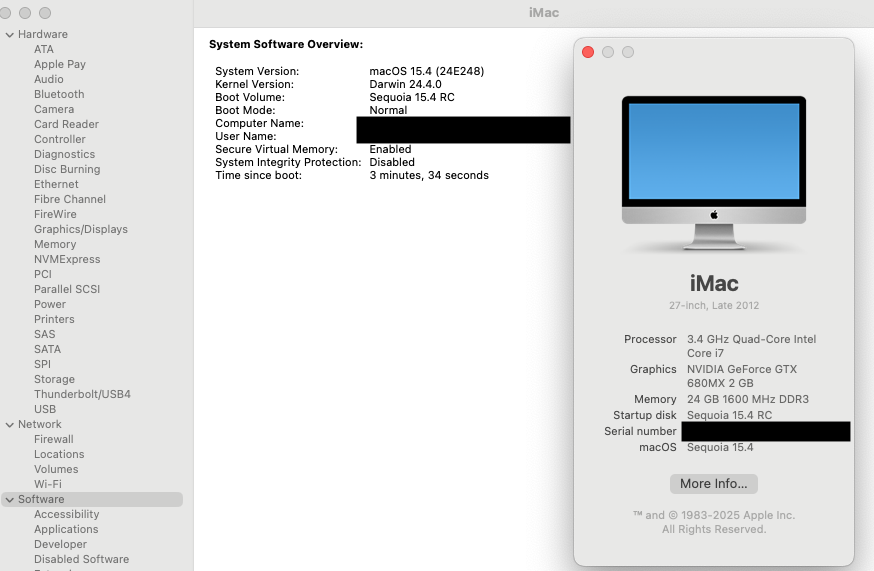 Updated OTA to latest 15.4 release (3.31.25) and updated OCLP to 2.3.