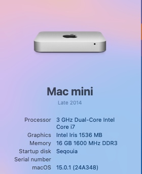Its a Samsung SSD 870 EVO 500GB.What is the SSD model? I have a Samsung EVO 128GB on my MBP4,1 Early 2008. I had the no entry sign displayed after updating macOS 14something to macOS 15.0. Restart solved the problem.