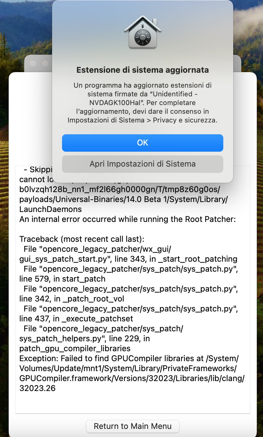 Probably my English isn't good, and I can't explain myself well. Anyway, yes, when it happens, it's an error. Even if I do it (I would need to go to Privacy and Security and grant permission to each file one by one), or just press OK, or do nothing, the system becomes unstable. However, if I revert and patch, these requests don't appear and all works fine.I am not sure I understand. Are you saying that you think OCLP asking for permissions is an issue/error in itself?