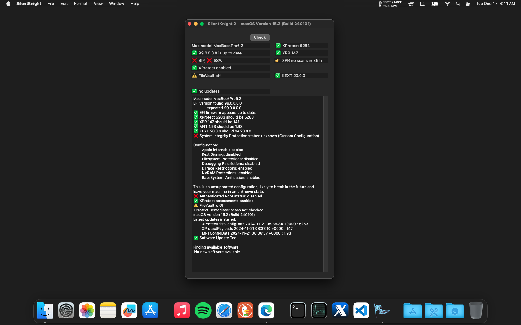 @tsialex) and the third attempt of building the USB stick it worked installing macOS 15.2. And it’s running buttery smoother.