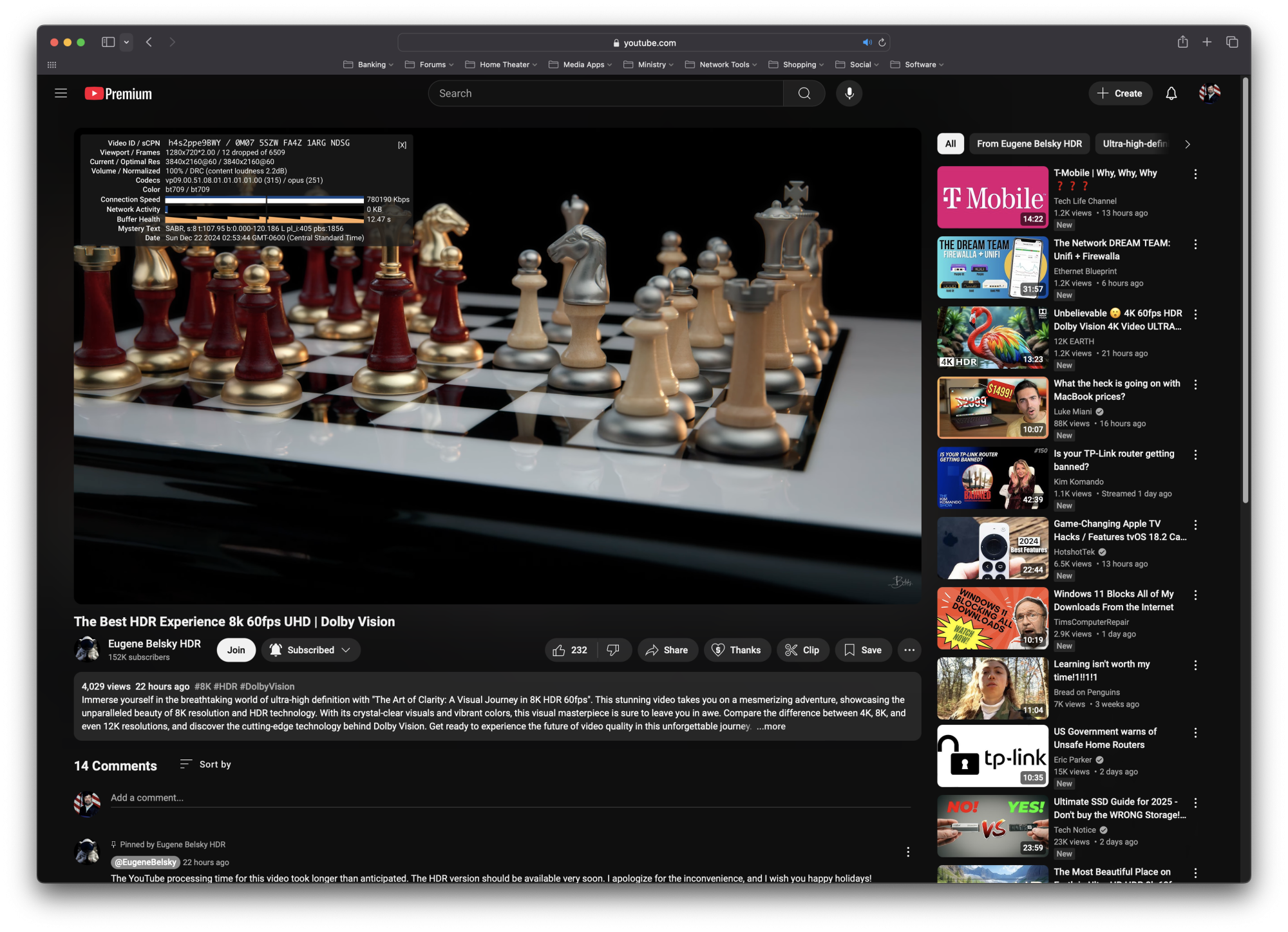 @Neon Ball Hi again, Just checked with stats for nerds. Looks like it's doing 4K VP9. According to the display.Did you check what codec was being used? For example on my 2015 15" MacBook Pro, Safari plays YouTube at 1080p max regardless of OS (just tested on native Monterey) and it is using AVC/h264. Meanwhile on my Kaby Lake Hackintosh, 4k is available because it has hardware accelerated support for VP9. I can get VP9 on the 2015 15" by using a 3rd party browser.