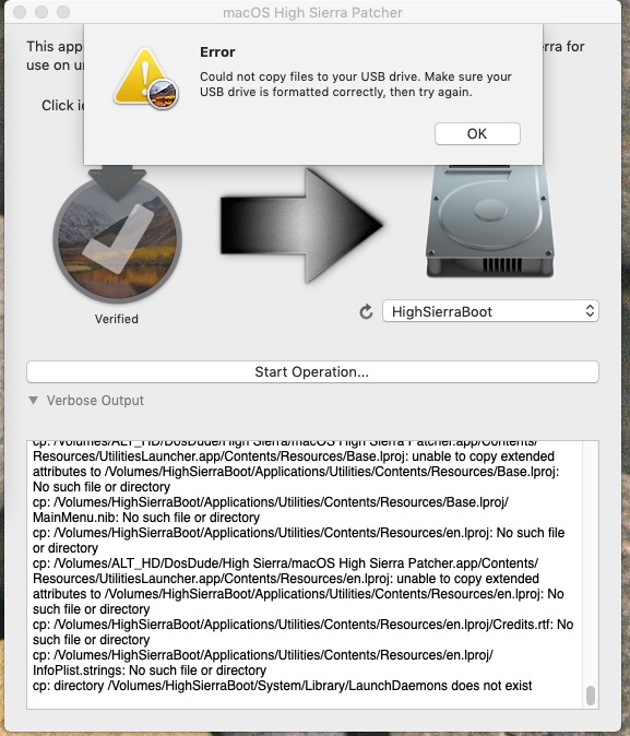 2. After getting the Patcher created and booting into this, the High Sierra Installer would fail with an error message saying "No packages were eligible for install. Contact the software manufacturer for assistance."