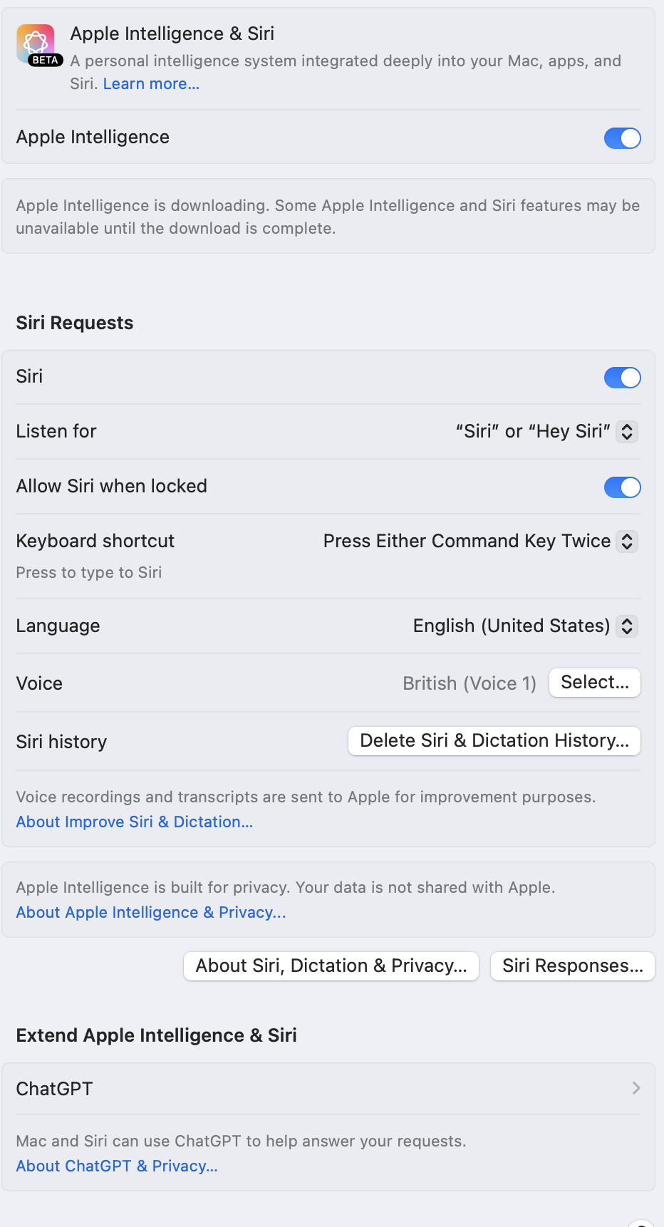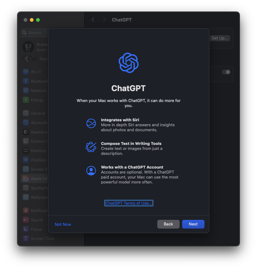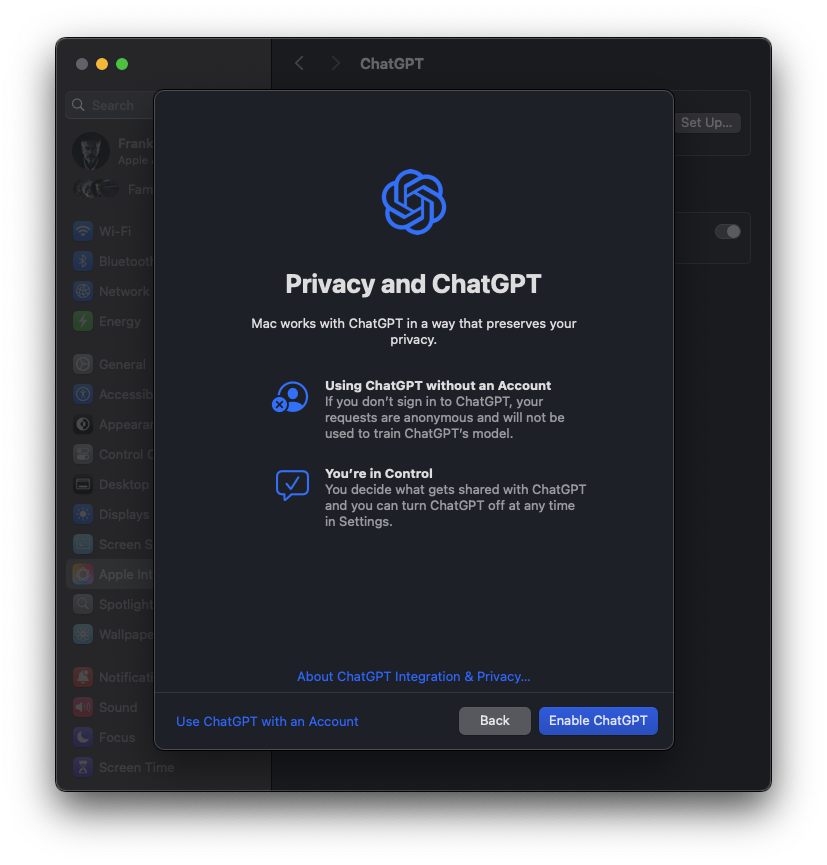 I think I'm stuck on this screen. Turned on ChatGPT Integration and now I can't use Siri at all for the past 2 hours. Anyone else stuck here?