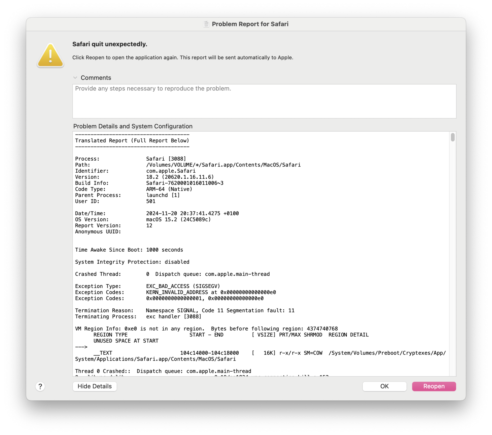 Well, I do have another issue. Clicking on a link in Gmail in the new Safari (V18.2) is now very sluggish. And, sometimes (because of the long wait time), I need to cancel the operation and click on the link a second time.
