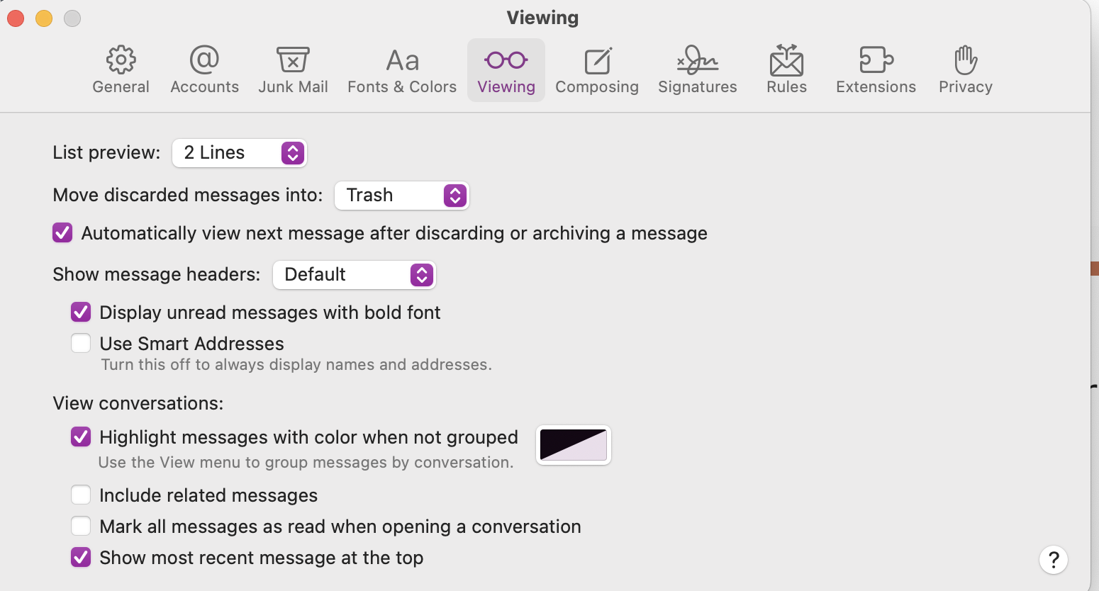 Thank you!you're looking in mail settings. it's just in the menubar when mail is open: