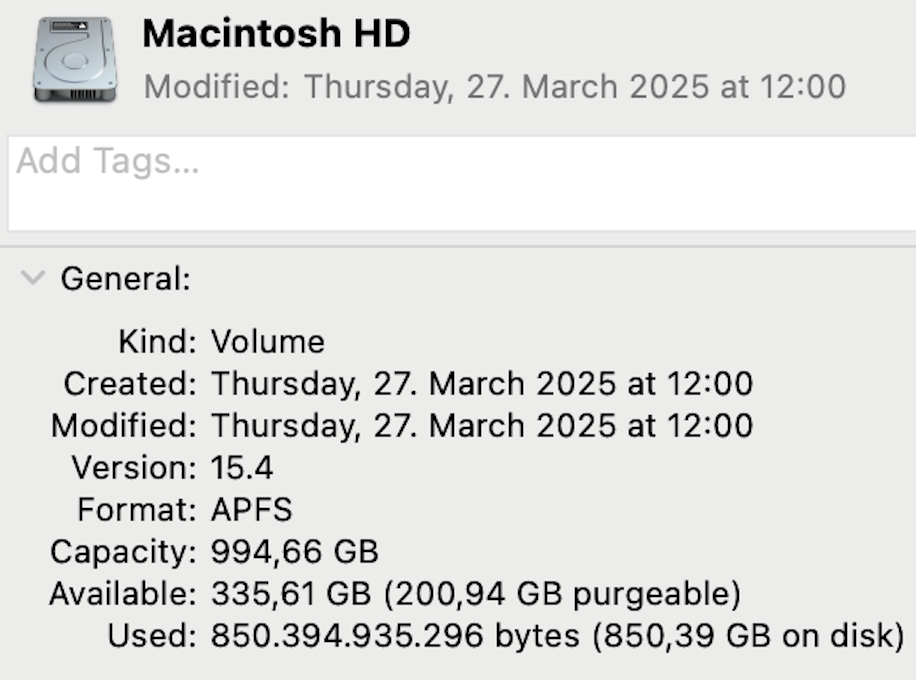 This is madness - difference in purgeable space between using Apple Intelligence or having it disabled is increasing with each update while actual use does not change. It would really be interesting to see to what level this would be increasing and where would purgeable vs used space ratio can end up like that - 100% maybe?View attachment 2498131View attachment 2498130