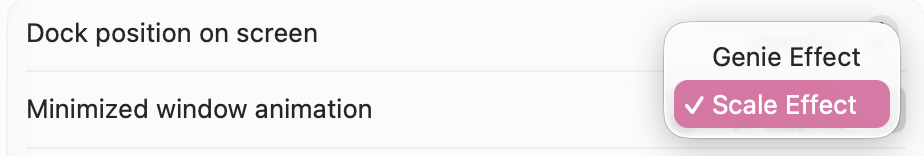 In Tinker Tool there are three options. "Suck in" is a little slower than "Scale" maybe that was the old one. I always used the "Genie Effect". So I can't really remember.