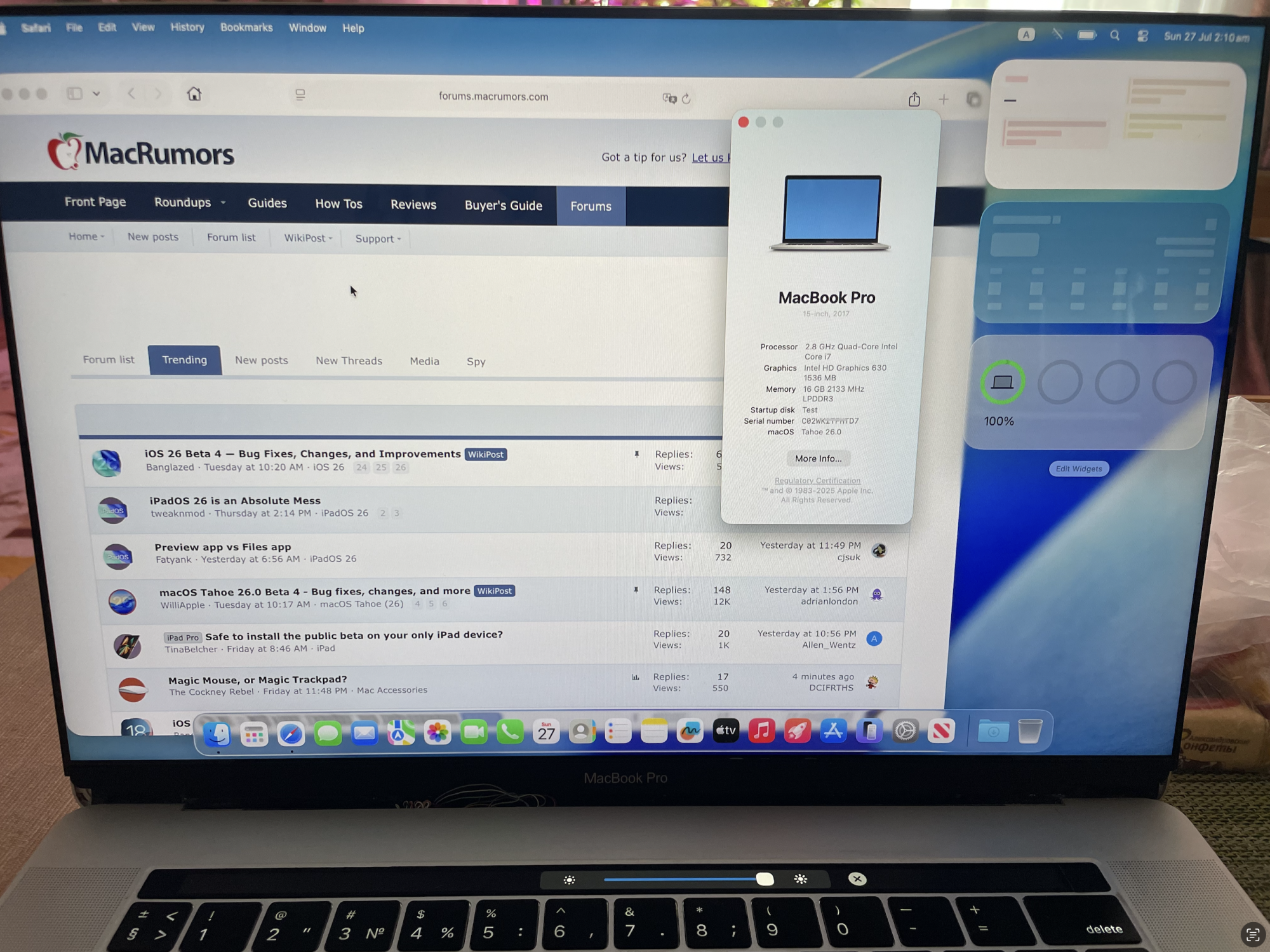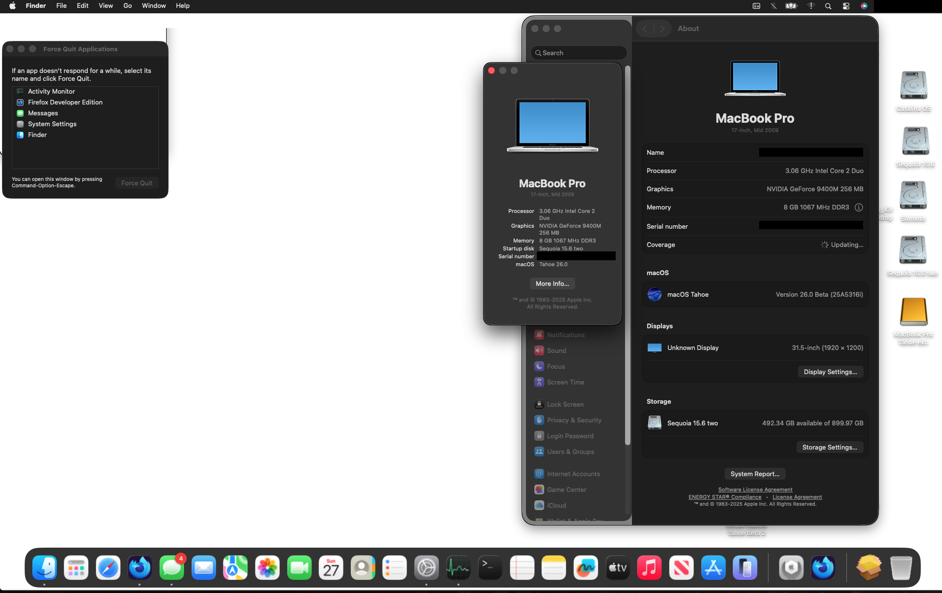 MacBook Pro 5,2. Tahoe desktop on the internal drive.