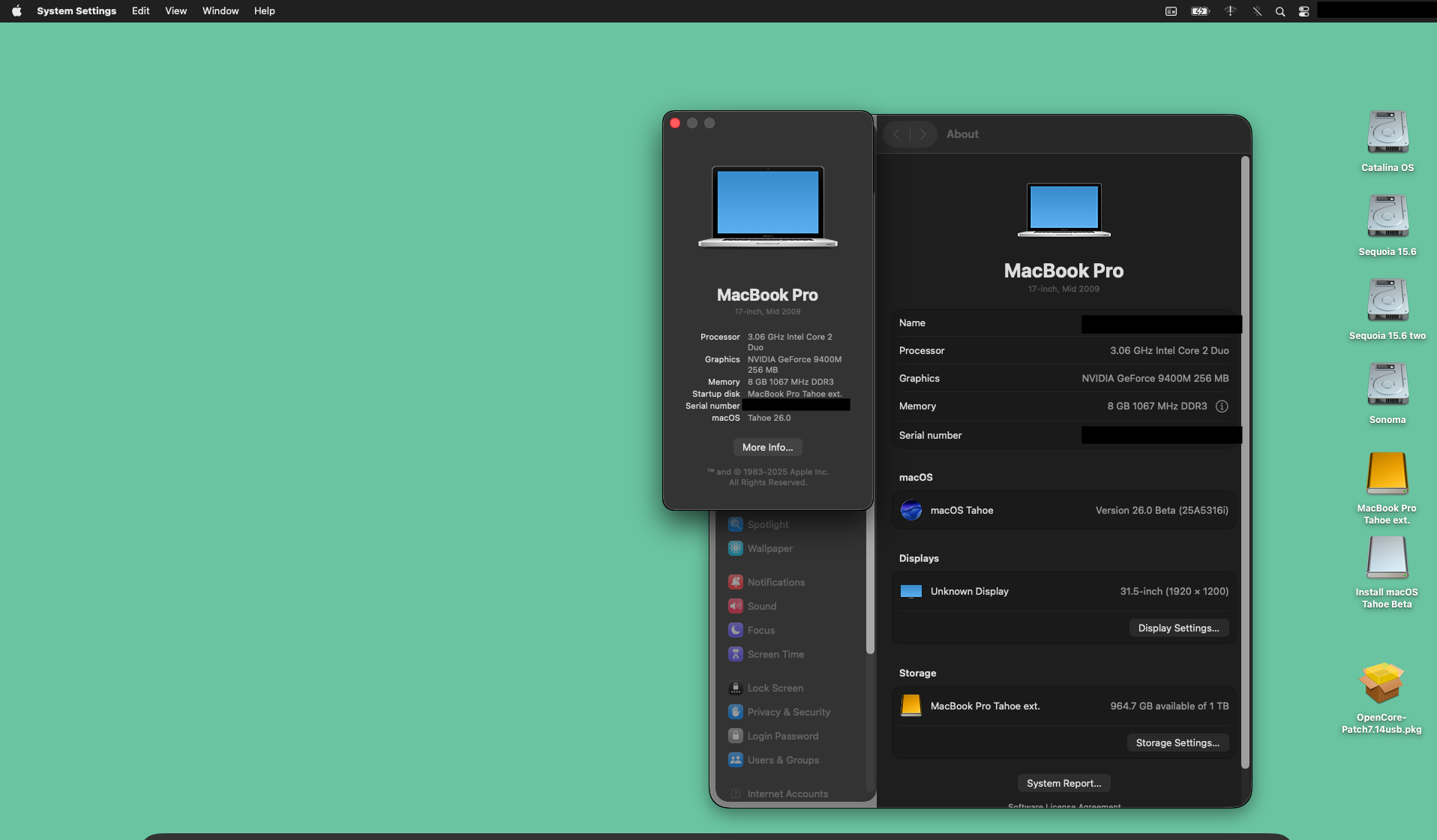 MacBook Pro 5,2 Tahoe desktop on external drive