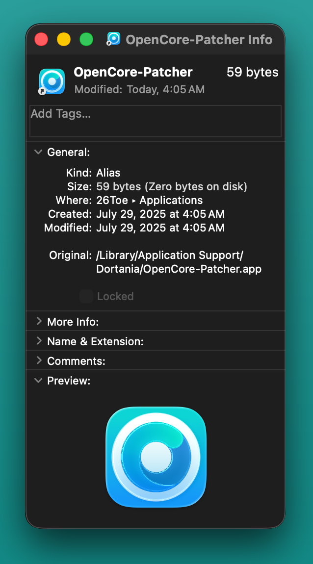 Installed Tahoe 26 beta4 OTA over Tahoe beta3 on an external SSD. Used OCLP nightly 3.0.0 from July 1st. Slow process, but eventually reached the login screen and then desktop; keyboard and trackpad were fully active. There is a significant system overhead, as evidenced by the Activity Monitor, presumably due to “liquid glass” requirements. “Iconserviceagent” takes over CPU cycles, and becomes even more insidious, when a new window is opened and the system attempts to render application icons within. It took a long time before Dock was displayed, but eventually it appeared and was fully functional.