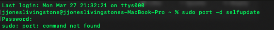 I am having some trouble with Macports. I installed Homebrew to work with Docker Desktop and Visual Studio Code back in September 2022. I today wanted to work with Macports and tried to run a 'port -d selfupdate' command, but got this: