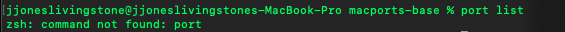The fact is I want to use macports now and the command 'port' does not do. Check the attachments for reference, if you can clarify. Copy that?Are you mixing this up with brew rather than macports? brew is the command for homebrew, port is the command for macports.