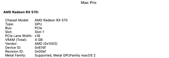Hello, noob here. I bought a Mac Pro 5.1 and tried to install monterey with the original card and opencore. Everything went fine. Than i replace the card with a Sapphire rx570 nitro 8gb and Monterey became very slow. Is there something i can do to solve this? I tried to mess with the "non metal" options but it didnt solve anything. So i tried to run an older macos version (high sierra) from another ssd i had with it, but i get a black screen with the sapphire. Can someone please help me? Thanks