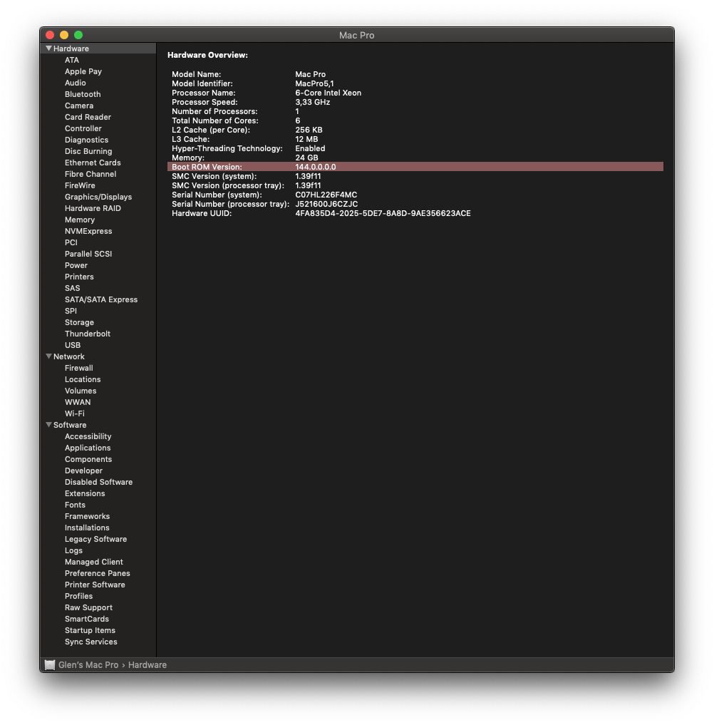 Now, I know from the las time I updated/flashed the ROM back in 2019 that the Boot ROM should be version 144.0.0.0.0 and not what is displayed here.
