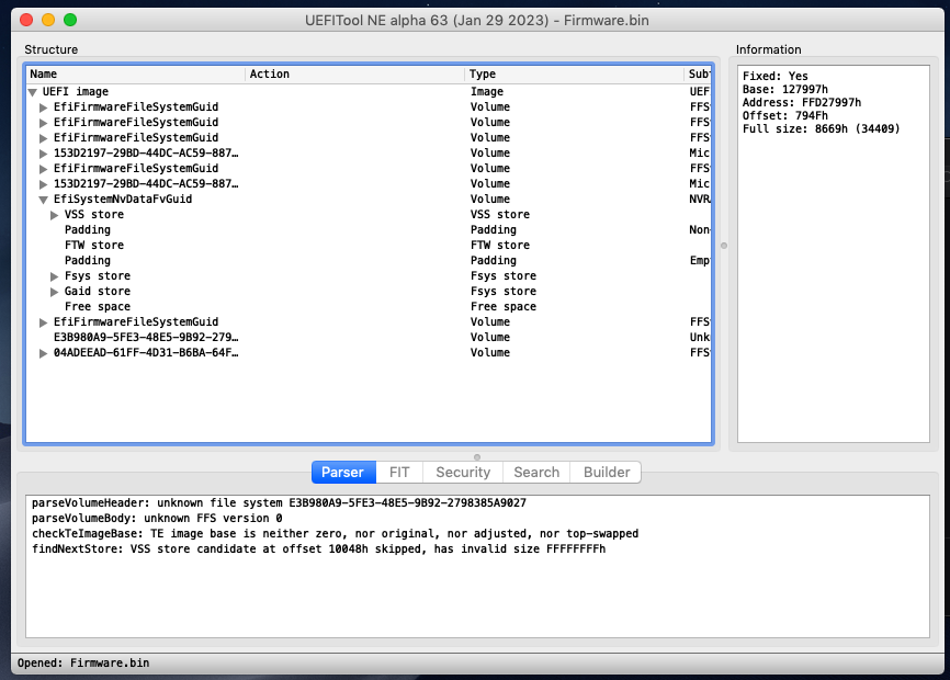- Open the dump with UEFITool NE A63. UEFITool NE A63 is the most recent release of UEFITool NE that works correctly with MacPro5,1 BootROM images, newer releases have issues, use A63.