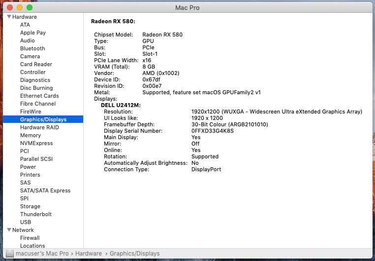 Here is what currently appears on my Mac Pro with the second GPU from Marek: