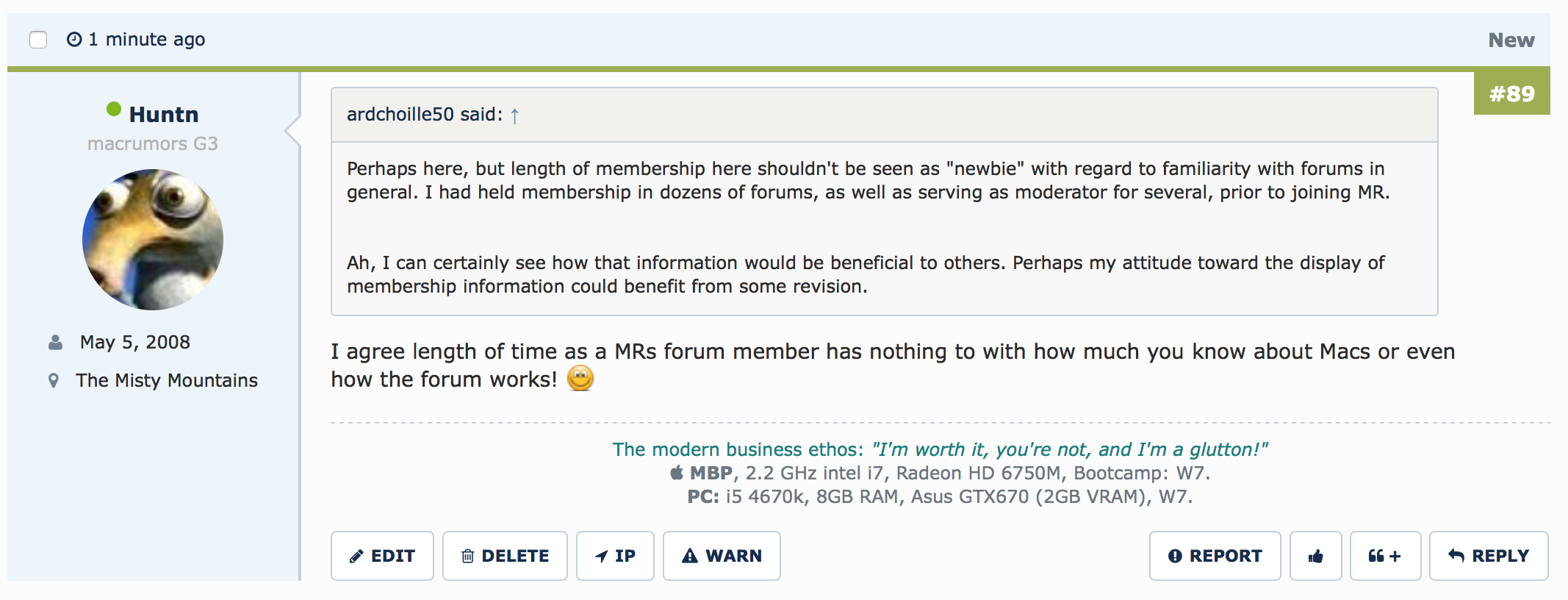 Perhaps here, but length of membership here shouldn't be seen as "newbie" with regard to familiarity with forums in general. I had held membership in dozens of forums, as well as serving as moderator for several, prior to joining MR.