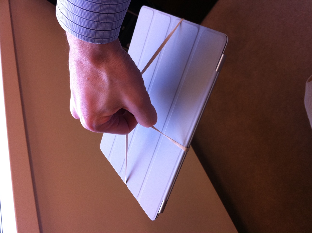 i'm sure apple will be launching this with ipad 3, it's so ingenious. It shall be called the smart carry, available in tan or pink colors for $39. Or green, blue, orange and black for $79.