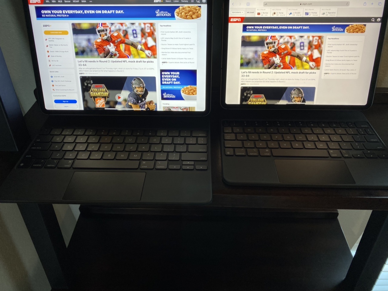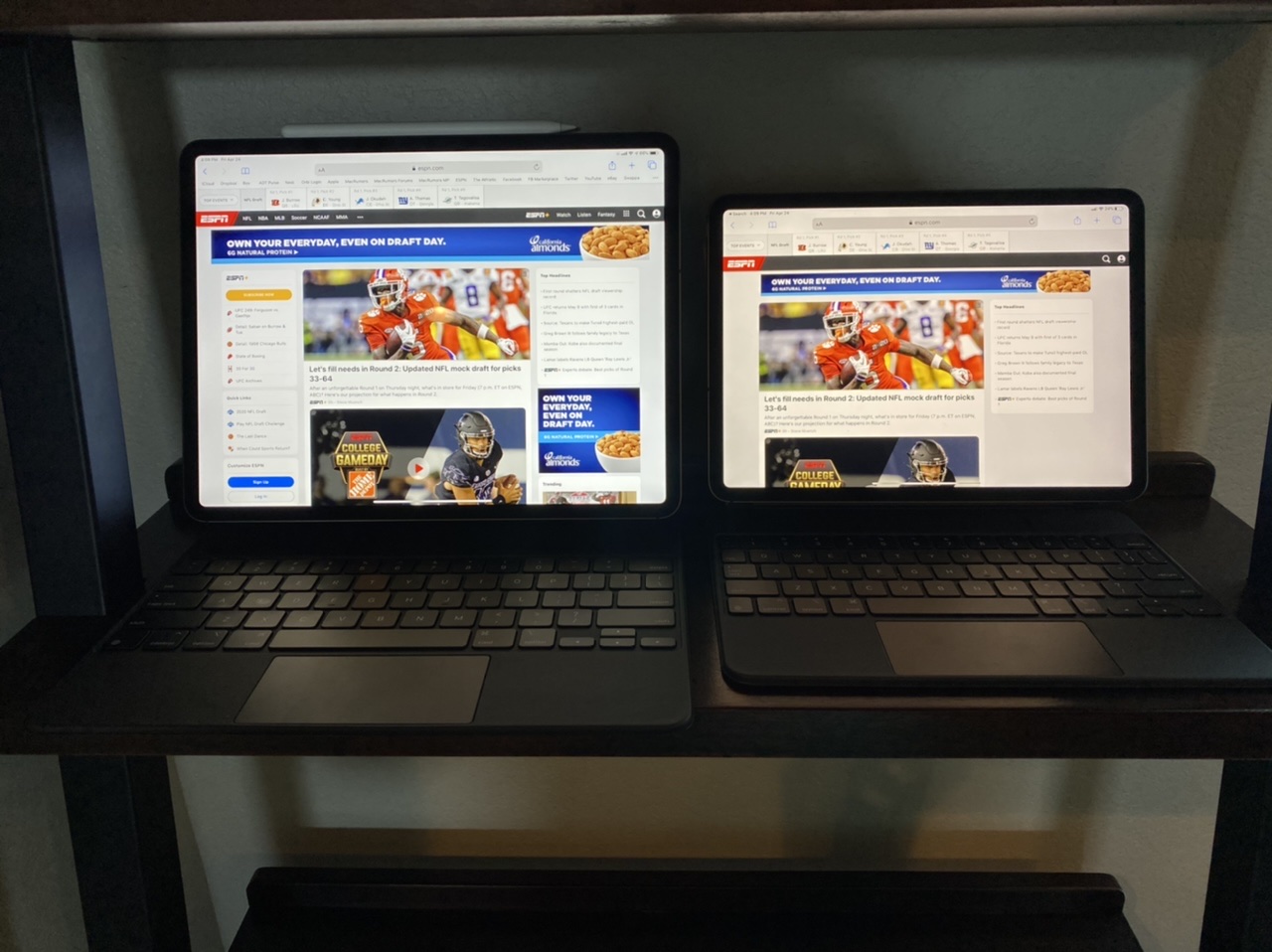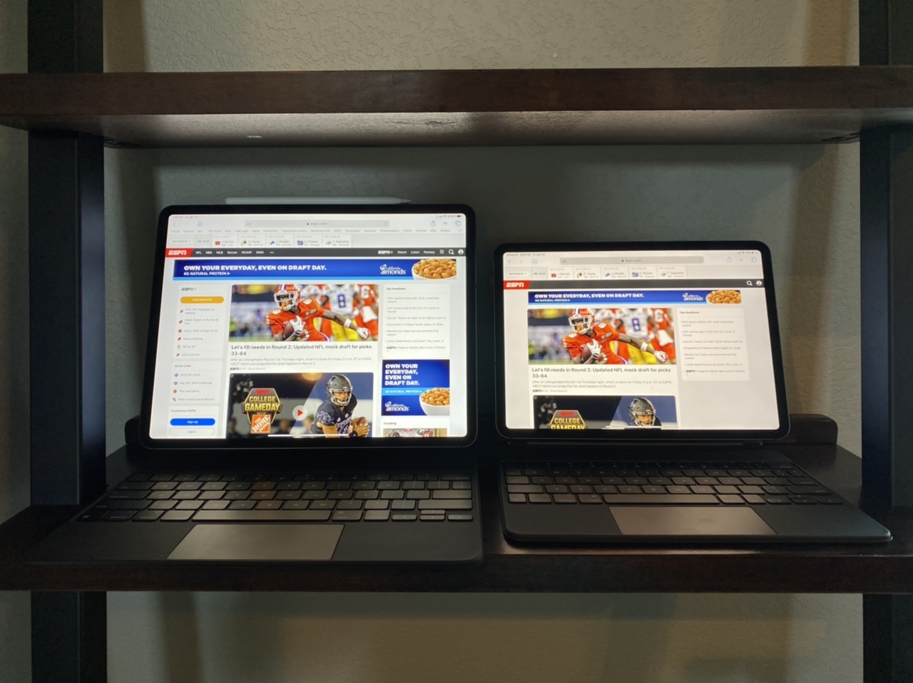 My wife owns the 11”. It’s just too small for me and the keyboard is cramped. I would choose the 12.9” every time.