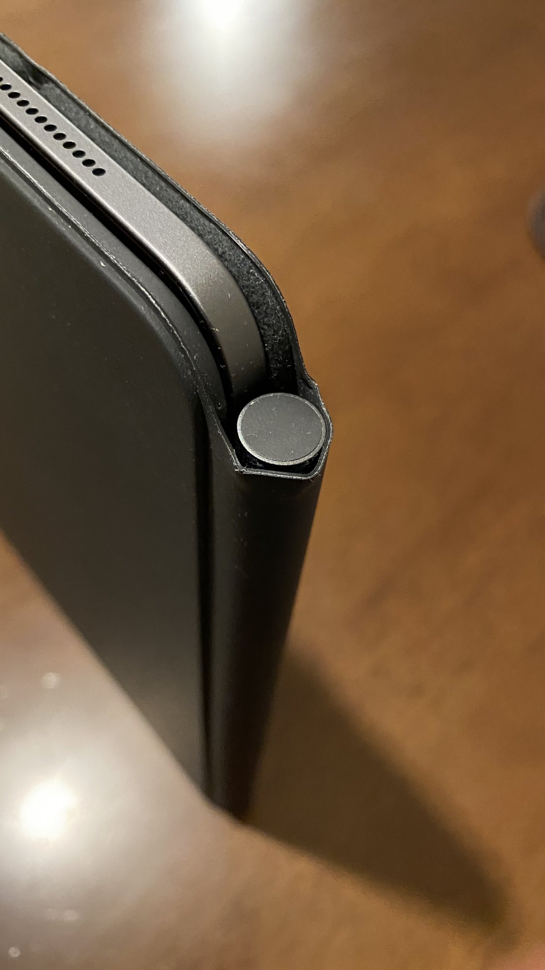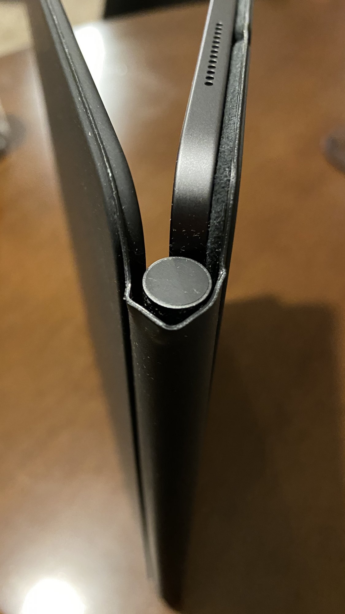 I ordered a soft case for my iPad Pro with Magic Keyboard and it arrived today. Up until now I just put it in my backpack “naked”. Well when I took it to put into my new case I saw that the rubber around one side of the hinges got stretched. I don’t know how that happened but I guess it got caught on something as I put it inside my bag. My case arrived a little too late