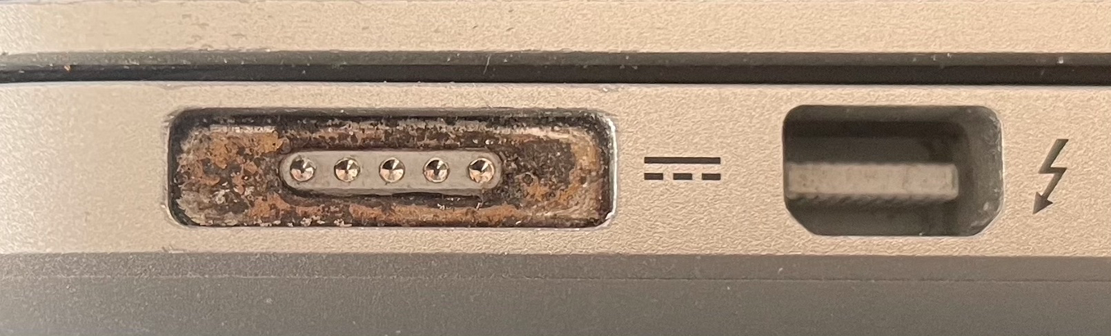 My MagSafe port appears to have substantial "burn-in". Been using MacBook Pros for years, with MagSafe, and I've never seen this before. Couple questions: