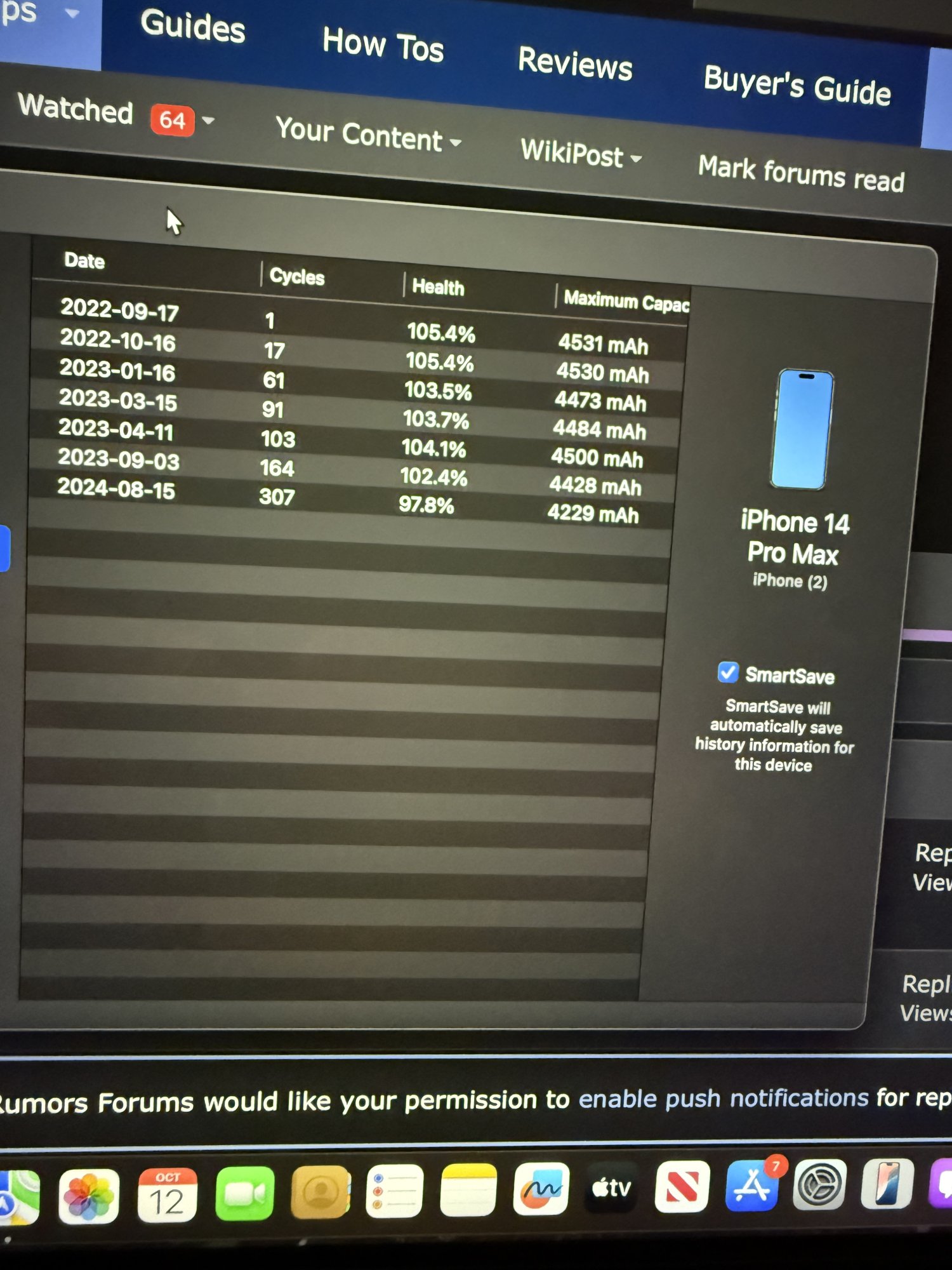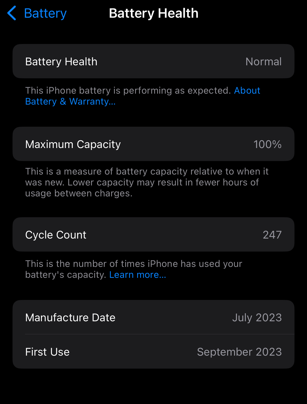 My iPhone 14PM which I traded in two weeks ago had it since launch date showed 97% battery health. Only evidence I have is from coconut battery which was taken on 8/15 , one month before trade in and a photo of the iPhone 14PM on 9/22/24 showing 97% health.