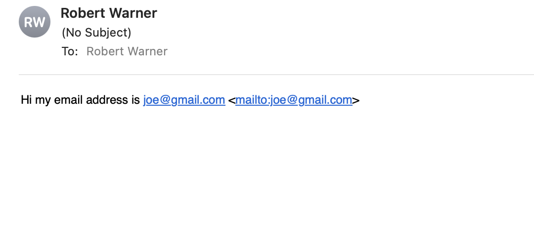 When I compose an email that includes an email address or url in the body of the message, the Mail app adds an html tag to the body of the message, like this:
