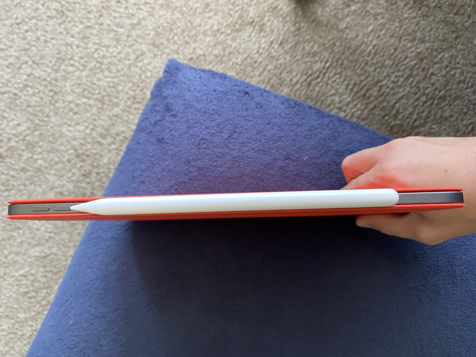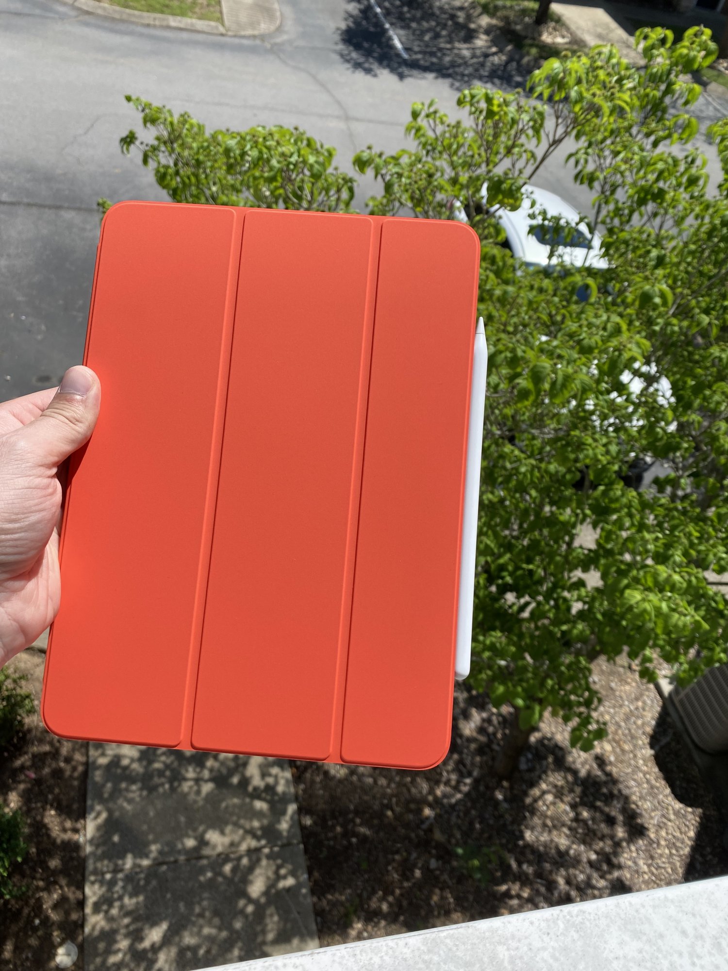 VERY tempted to pick this up for my silver iPad Pro. Happy apple is introducing more orange colors recently. Just wish there was more consistency between the colors for the watch, phone and iPad.Here is electric orange in indoor lighting and outdoor.