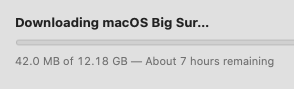 Servers seem to be super busy to download Big Sur at the moment:Something looks wrong there. It says you are going to get 12+GB downloaded in less than 2 minutes??? Here's what I got: