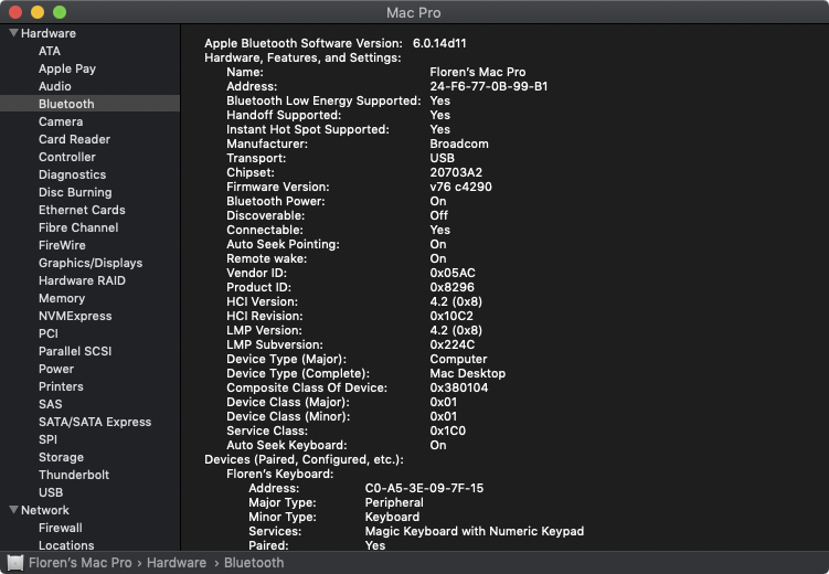 I upgraded the stock card to BCM943602CDPAX in order to get Bluetooth 4.2 and continuity, it was fine in Mojave/Catalina, now invisible in Big Sur. Here are my details in Mojave:Not sure what is going on here. My cMP 5.1 upgraded to BigSur with no issues (apart from no DRM streaming which is a known problem for now). BCM94360CD working fine with full continuity, watch unlock etc.
