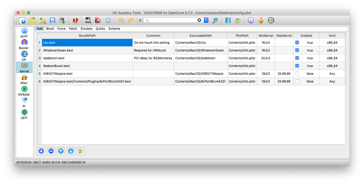 0.7.3 OpenCore Reference Manual, "The choice of open-source implementations with transparent binary generation is encouraged (e.g. OCAT), since other tools may contain malware. Remember that a configuration made for a different hardware setup shall never be used on another hardware setup."