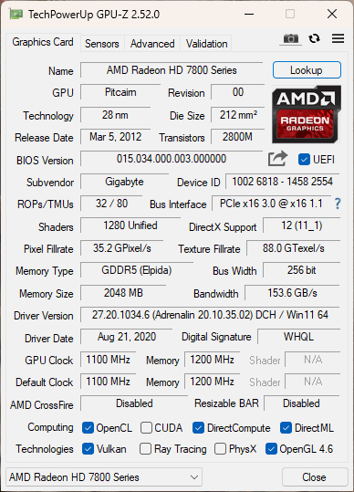 That’s too bad. The GPU architecture is the same, pro or not. It’s especially odd since so many off-the-shelf Polaris cards work. If the OP is on the hunt, there are a lot of cheap RX 480s out there. I have the XFX variant, and it works perfectly. Years ago, I do recall getting an RX 560 that didn’t work and ended up getting a 580 instead.I have a MSI 7870 GHz version and I know one thing or two about support these Pitcairn cards.