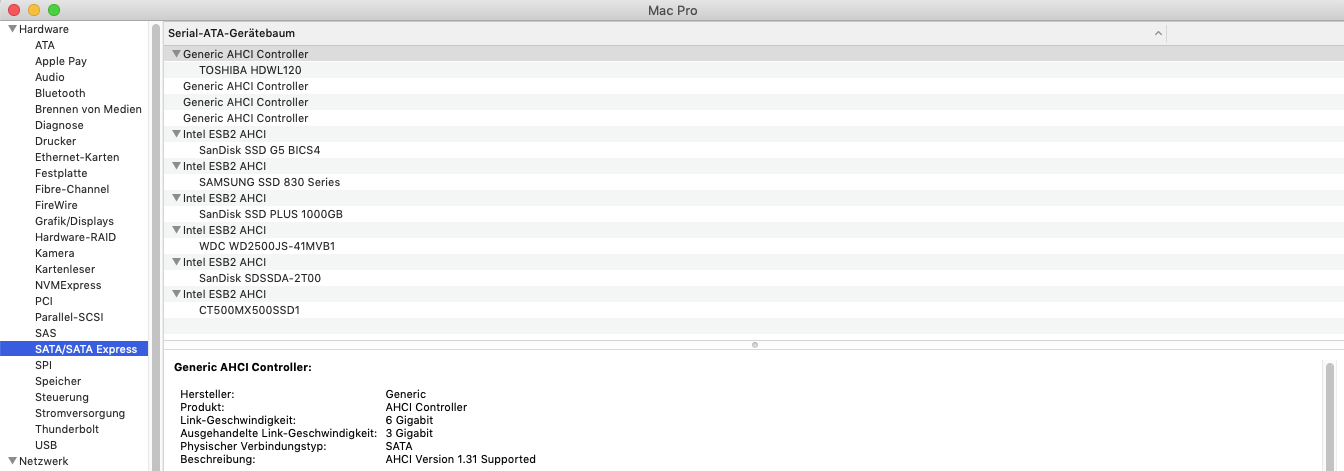 Hello guys, I'm currently running OpenCore REL-091-2023-04-03 on my Mac Pro 3,1 which I have installed with the aid of OCLP. It certainly is a fantastic piece of software and works great on my beloved Mac Pro for the most part but I do have issues with two of my PCIe cards. One is a Sonnet 2 port eSATA card and the other card is a generic 2 port SATA controller card sitting in the mini PCIe slot (my Airport card is in a riser card with external antennas for better reception – so that's why). I checked and both cards use the ASMedia 1061 chip which works great in patched Mojave and Catalina (dosdude1 hacked installs). However, when I boot Mojave, Catalina or Big Sur with OpenCore said 2 cards cease to work. I do have some basic understanding of hackintoshing and poked around the config.plist but I don't really know what to change there ...