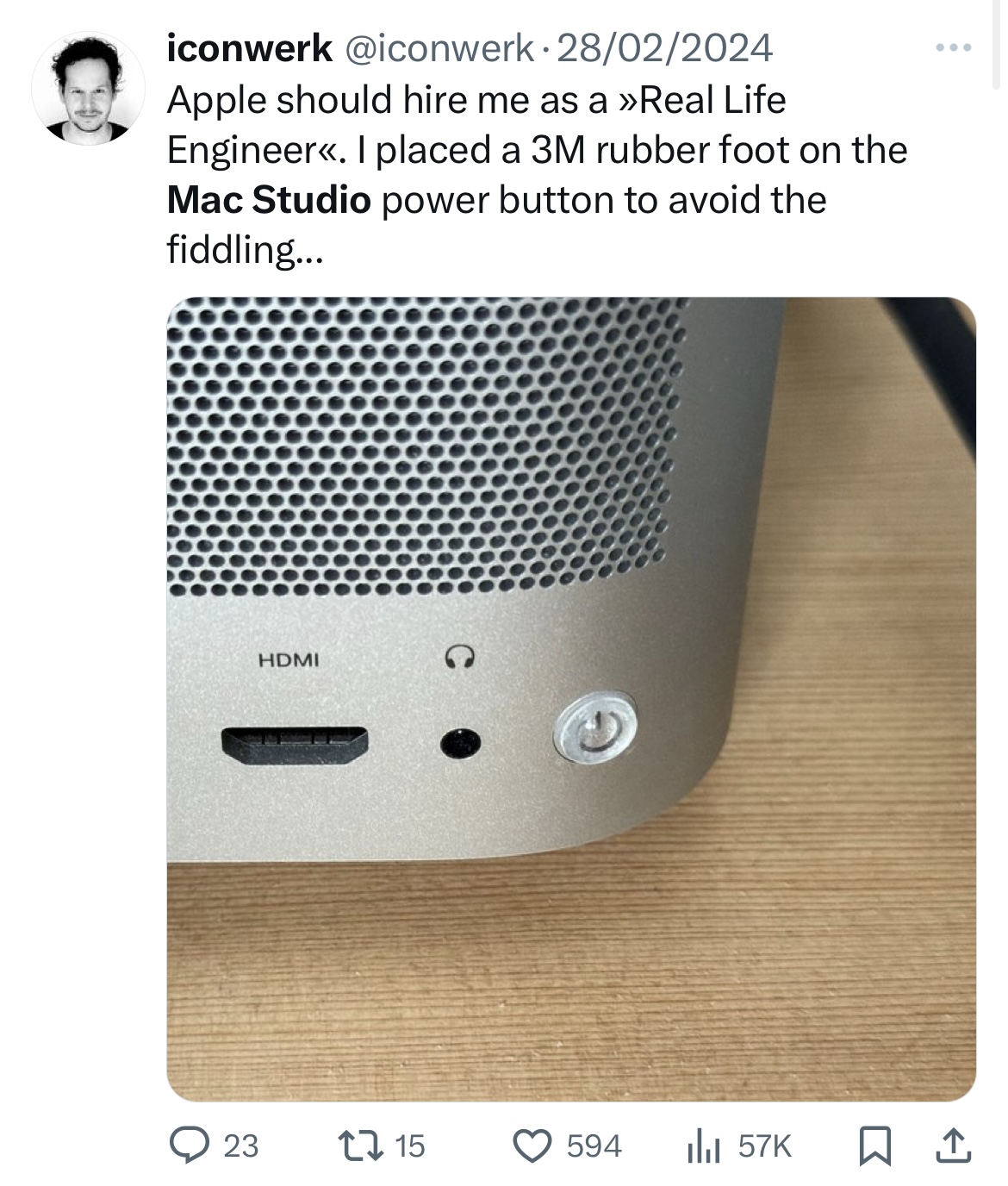 Does any one make a stick on to mark where the power button on a Mac Studio is. It is really annoying trying to feel where it is with a finger.