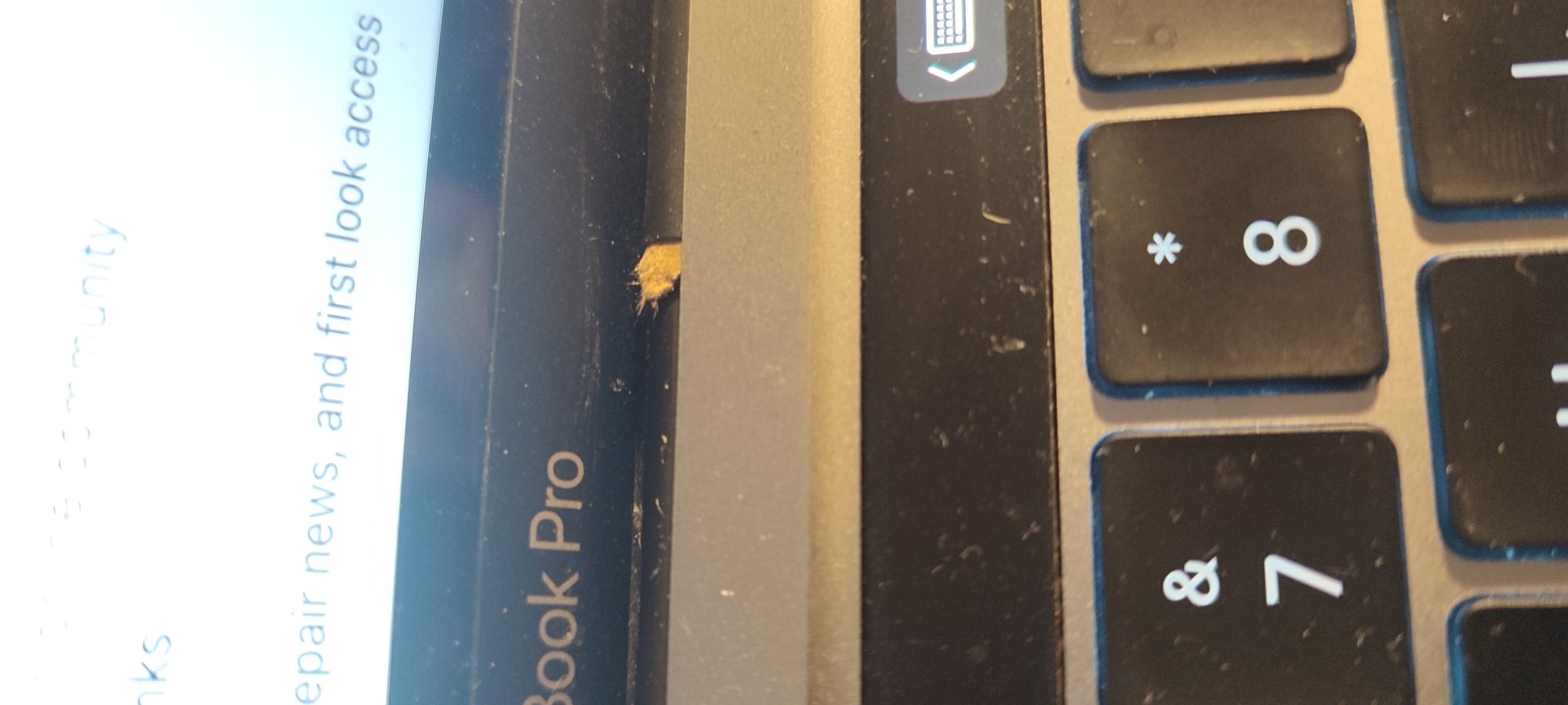 Without having changed/touched/mod anything I noticed the other day a cardboard like paper poking out of the "hinge" that connects the monitor to the keyboard. Please see picture.